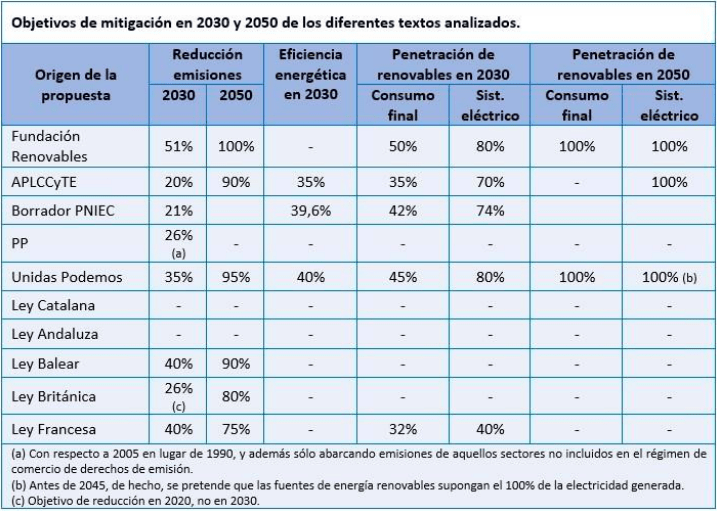 Actualmente, el Anteproyecto de Ley de Cambio Climático y Transición Energética es la máxima esperanza verde. En él se establece también un 100% de renovables, pero solo en el sistema eléctrico y no en el consumo final, por lo que desde la fundación piden al equipo de Pedro Sánchez “aumentar la estrategia climática presentada”. Solo Unidas Podemos propone objetivos similares –en su caso para 2045– a los expuestos por el estudio.