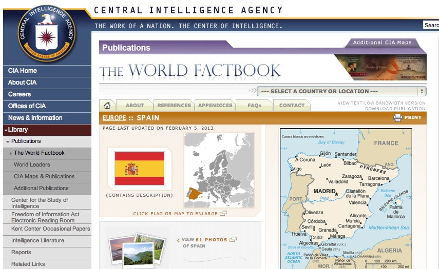 ¿Se acuerda del movimiento 15-M? La CIA, sí. En su libro The World Factbook, donde recoge su visión de los países del mundo, la central de inteligencia estadounidense ha incluido a los indignados entre los “grupos de presión” de España, junto a los sindicatos, la Asociación de Víctimas del Terrorismo (AVT), la Iglesia y los “intereses empresariales e inmobiliarios”.
