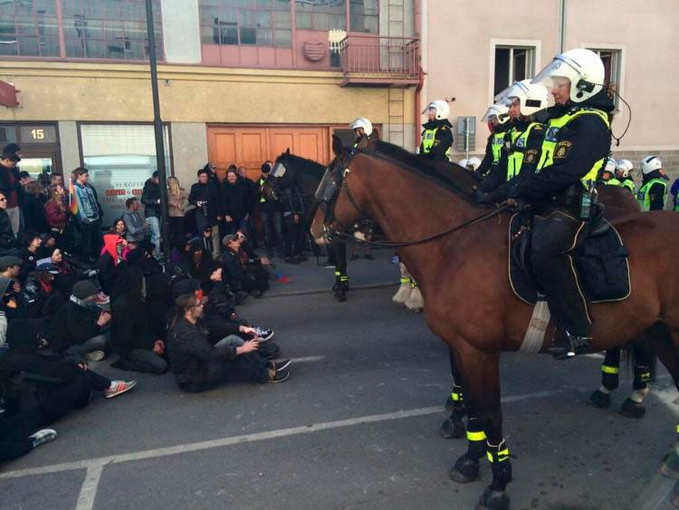 Mientras tanto, 150 miembros del SVP desfilaron ayer por las calles de esta población sueca de 85.000 habitantes. La marcha fue contrarrestada por una concentración de más de 1.000 personas que protestaron contra la celebración de la misma. La actuación de los 450 agentes de policía que permitieron la marcha de los neonazis está siendo muy cuestionada en las redes sociales.