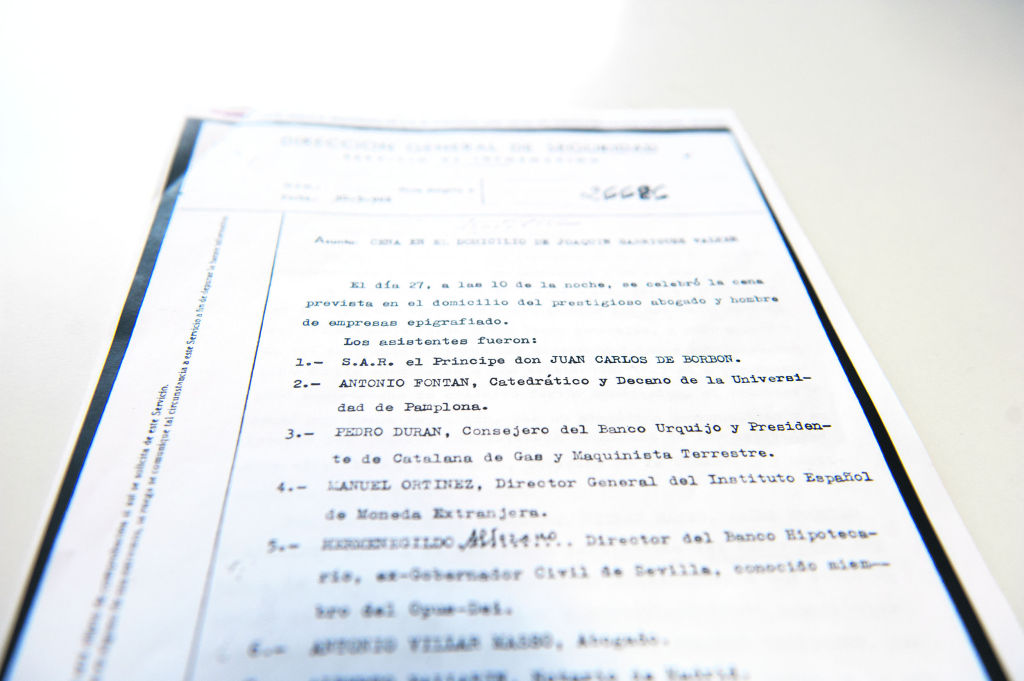Un informe de los servicios de inteligencia de la dictadura, datado en 1966, narra el transcurso de una cena en la que participó el entonces príncipe Juan Carlos de Borbón. El documento pone de manifiesto los movimientos de la oligarquía franquista y del futuro monarca para preparar un régimen post-dictatorial que pudiera homologarse a los países europeos del entorno. Eso sí, en la cena quedaba muy claro que el sistema  resultante tendría que ser fuertemente bipartidista. “El príncipe aludió a que habría que evitar los excesos del pluripartidismo, a lo que Villar [Masso] y otros abundaron en que bastaría con una inteligente Ley Electoral para que se pudiera garantizar en la práctica el sistema de dos grandes partidos, socialista democrático y demócrata cristiano, con algún otro sector marginal o complementario”, se explica en un documento firmado por la Dirección General de Seguridad al que ha tenido acceso La Marea y que se encuentra en el archivo de la Fundación Francisco Franco.