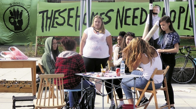 Entre megáfonos, espacios recreativos para sus hijos y consignas pintadas con tizas de colores, Focus E15 resucita una vez a la semana las fantasmagóricas calles de un barrio que hace apenas unos años estaba vivo. “La zona está siendo destruida lentamente desde hace una década”, explica Hannah. “El proceso de gentrificación es cada vez más rápido y la gente está siendo forzada a abandonar el lugar donde debería estar viviendo”, agrega. Los Juegos Olímpicos de 2012 fueron uno de los aceleradores de este éxodo forzoso. Muchas personas fueron desalojadas por el Ayuntamiento de Newham de sus hogares en Carpenters Estate, una finca de tres grandes bloques de vivienda pública al lado del Parque Olímpico. El alcalde de Newham, Wales, usó «todos los trucos para deshacerse de los residentes y vender estos terrenos municipales a promotores privados de cara a los Juegos”, explica Sam, una de las madres. “Incluso dijeron que había amianto en uno de los bloques para echar a los vecinos antes de las Olimpiadas y luego dejar que las cadenas de televisión Al-Jazeera y la BBC los utilizaran durante el evento”. Ahora la finca permanece vacía.