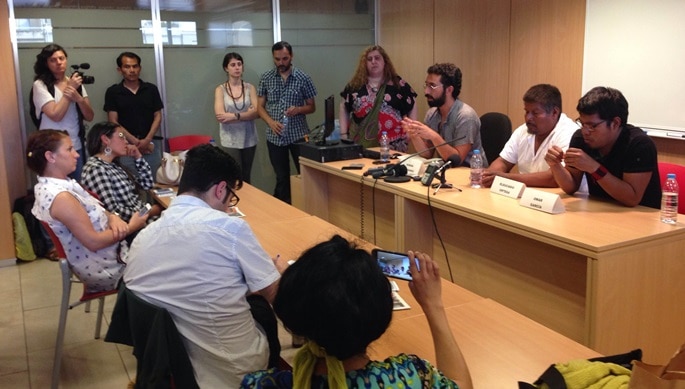 Omar llegó ayer a Barcelona acompañado de Román Hernández (del Centro de Derechos Humanos de la Montaña Tlachinollan) y de Eleucadio Ortega, padre de Mauricio Ortega (víctima de los hechos en Ayotzinapa). En la espalda llevan más de ocho países europeos visitados con un objetivo claro: «Exigimos que el estado mexicano presente a los 43 estudiantes en vida de manera inmediata. Solo la sociedad civil nos puede dar la fuerza para presionar a nuestro gobierno», explicaba Hernández.