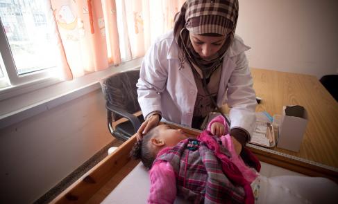 Niña palestina siendo atendida en una clínica de la agencia de la ONU para los refugiados palestinos en la franja de Gaza. UNRWA
