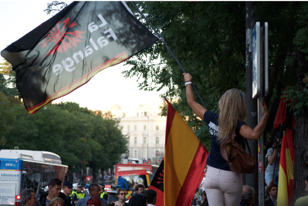 MADRID// La Delegación del Gobierno de Madrid asegura que ha enviado un vídeo a la Policía Nacional donde se recogen imágenes de la concentración organizada el pasado 11 de septiembre por Falange contra la independencia de Cataluña «para que estudien si el contenido del mismo es constitutivo de delito», según ha confirmado a este diario la misma Delegación. Durante la Diada se realizó un acto contra el separatismo catalán ante el centro cultural Blanquerna, sede de la Generalitat de Catalunya en Madrid. El acto estaba organizado por La Falange y otros grupos de extrema derecha integrados en la coalición La España en Marcha.