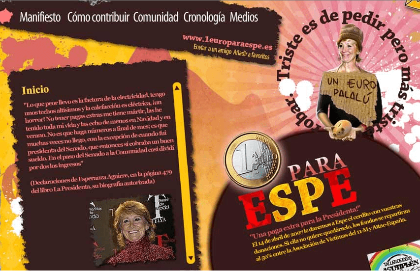 La condesa consorte de Bornos contó con la solidaridad  sarcástica de los madrileños. Algunos llegaron a crear una web para donar un euro a Esperanza Aguirre para que pudiera pagar la luz. No sabían en aquel momento que ya la pagaban vía IRPF en el tramo autónomico.