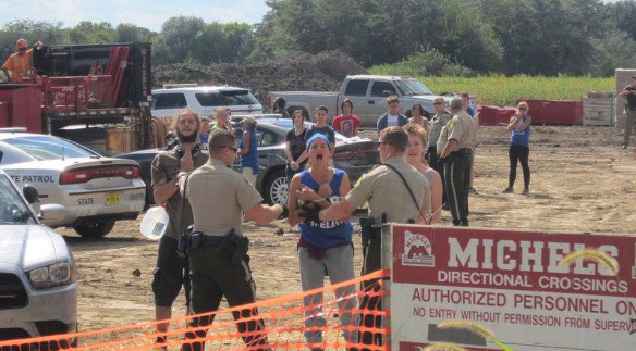 Pasamos el fin de semana informando acerca del controvertido oleoducto Dakota Access, con la amenaza del cargo por disturbios siempre presente. El oleoducto de más de 1.700 kilómetros de extensión y 3.800 millones de dólares de costo está diseñado para transportar casi 500.000 barriles de crudo desde yacimientos petroleros de Dakota del Norte hasta Illinois, y desde allí hasta el Golfo de México. Es por ello que miles de personas se han instalado en los campamentos de resistencia ubicados cerca del lugar previsto para que el oleoducto Dakota Access pase por debajo del río Missouri. Si hubiera un derrame en ese lugar, se contaminaría el agua potable para el suministro de millones de personas río abajo.