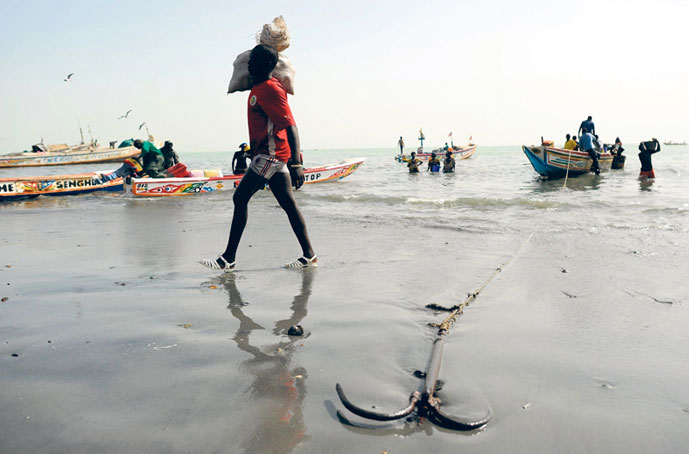 NGOR/DAKAR (SENEGAL) // Apenas hay peces en el mar del pueblo senegalés de Ngor, de 3.000 habitantes y a 15 kilómetros de Dakar, la capital. No hay peces, pero sí un estadio de fútbol que sería la envidia de muchos equipos regionales europeos. Porque ese fue el cambio. “Hace seis años llegaron los chinos y los rusos y ofrecieron construir el estadio de futbol a cambio de poder pescar”, cuenta Babacar, pescador del pueblo, que un domingo por la tarde pasea por la playa mientras a pocos metros su piragua de colores, como tantas otras, permanece amarrada. El paisaje muestra a los pequeños barcos en tierra, mientras al fondo, en alta mar, se divisan enormes cargueros.