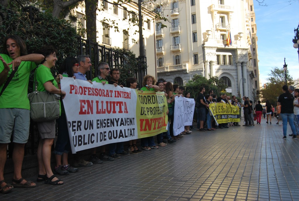 Por estos motivos, los sindicatos integrados en la Plataforma per l’Ensenyament Públic celebraron este viernes una concentración a la puerta del IES Lluís Vives. Esta concentración es la primera de muchas que se esperan para este otoño en respuesta a la reforma de la ley educativa que presentará el ministro de educación, José Ignacio Wert. “Es el momento de plantear una huelga general que no debe pasar de octubre antes de que los recortes vayan más allá todavía”, explica un líder sindical.