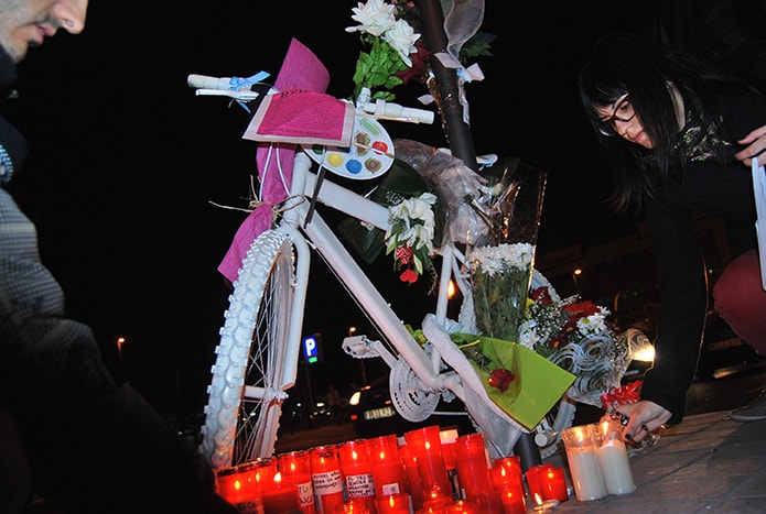La joven se llamaba Rebeca. Ayer, viernes, amigos y familiares le hicieron un homenaje en el lugar donde fue atropellada. En el paso de cebra queda ahora una bicicleta blanca en su recuerdo y multitud de velas y flores.