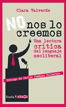 Así arranca el libro No nos los creemos. Una lectura crítica del lenguaje neoliberal (Icaria Editorial), en el que la escritora y profesora de enfermería Clara Valverde elabora un exhaustivo análisis sobre cómo las élites económicas y políticas logran dominar a la población mediante el lenguaje, cómo consiguen perpetuar y extender una visión única, acorde con los intereses que persiguen, de los problemas que atañen a la sociedad.