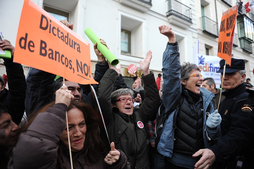 Entre carteles como “Bankia, ustedes tienen ayudas, sus clientes no” o “Banqueros, ladrones, culpables de la crisis”, los manifestantes han festejado que el debate “de mínimos” planteado por la PAH llegue al Congreso. “Es una vergüenza, inhumano, que tantas familias nos estemos yendo a la calle, que esto esté pasando en el siglo XXI”, lamentaba frente al edificio Luisa -nombre ficticio, ya que teme que su nombre llegue a conocidos suyos-, una de las mujeres que hasta el desalojo, hace pocos días, permanecía acampada en la plaza Celenque.