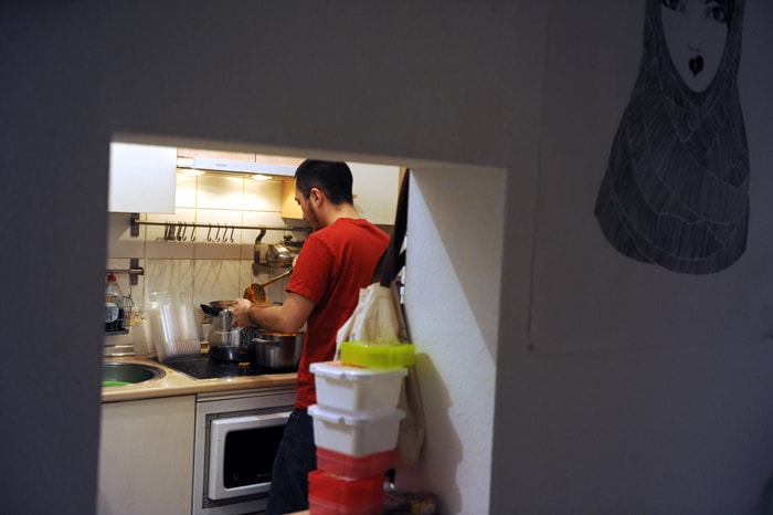 «No sé qué qué historia se esconde detrás de cada persona que viene a recoger la cena, no los voy a prejuzgar», explica Jaime mientras prepara la cena en su casa. «La misma receta que me hago para mí», asegura orgulloso uno de los dos impulsores de esta idea en Madrid. Eligieron Tirso de Molina porque era una zona en la que sabían que había «un grupo fijo de ocho o diez personas que vivía a la intemperie». El primer día que llegaron con la cena solo repartieron diez raciones. Este martes llevaron más de 50.