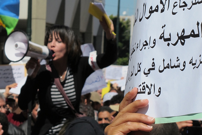 Mucho se ha hablado del papel de las mujeres en las primaveras árabes. En Marruecos, miles de mujeres de diferentes clases sociales salieron a la calle, junto a los hombres, con unas demandas comunes, entre las que se encontraban el respeto y la igualdad entre los sexos. Culturalmente, en el país la mujer es considerada inferior al hombre, aunque el nivel de discriminación no es comparable, por ejemplo, a los países del Golfo. El hecho de que Marruecos sea considerado la puerta de Occidente, hace que las culturas se crucen y se enriquezcan y que muchas mujeres se vean reflejadas en sus vecinas europeas. Sin embargo, es contradictorio pedir al régimen que elabore una legislación que proteja los derechos de las mujeres cuando, a nivel social e individual, una gran parte de la población las sigue discriminando. Cuando se produce una violación, por ejemplo, la deshonra es para la mujer. Las madres solteras son marginadas social y legalmente.