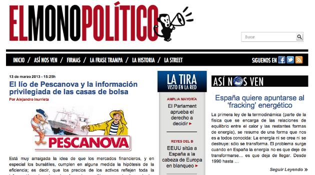 “La idea de El Mono Político es hacer un tipo de periodismo diferente muy inspirado en la blogosfera anglosajona”, explica el director. “No es un medio generalista. Se mezcla información, análisis, opinión y comentario. La diferenciación de estos géneros en los medios tradicionales siempre ha sido un poco difusa. Nosotros directamente la desmantelamos”.