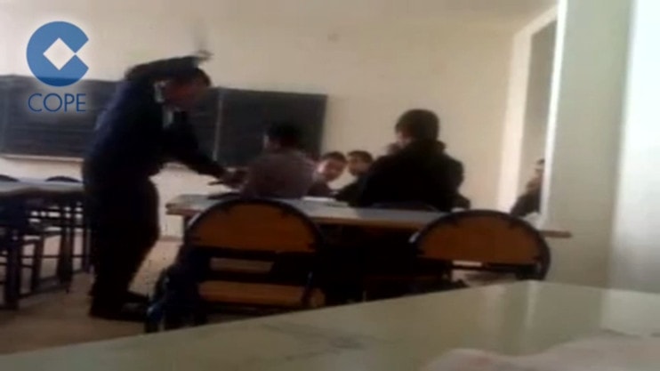 El vídeo, grabado hace varios días pero difundido hoy por la emisora de la Cadena Cope en la ciudad autónoma, ha sido entregado a la policía, que lo ha remitido al Juzgado de Instrucción número 4 de Melilla, de acuerdo con los datos de la Delegación del Gobierno en esa comunidad autónoma. El profesor que aparece en las imágenes ya ha sido identificado pero no se ha informado de su detención.
