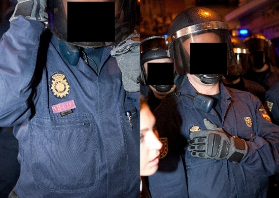 MADRID // La Comisión legal de Sol ha presentado este martes una denuncia contra el Director Generla de la Policía y la Guardia Civil, en la que aportan hasta 248 fotos para probar que las unidades de antidisturbios “incumplen la obligación de llevar su placa con el número profesional” de forma “sistemática”.