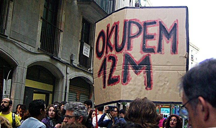 Y es que acoger a familias desahuciadas era uno de los objetivos del proyecto, tal como lo fue en el año inicial del 15-M la ocupación de un edificio vacío en el distrito de Nou Barris, que recibió el nombre de ‘Edificio 15-O’. La intención del colectivo era poder acoger a familias pero no como un servicio social al uso, sino implicándolas en la dinámica comunitaria, en un ejercicio de reciprocidad. “Queremos romper con la idea de ayudar a la gente por la de apoyarla”, afirmaba Iris.
