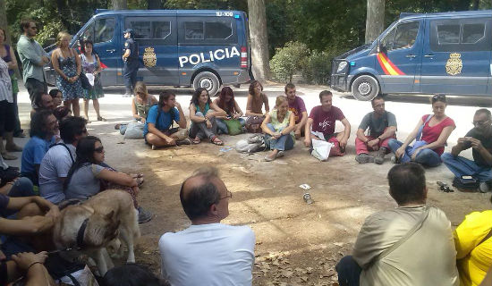 Medio centenar de personas se encontraba reunido en el Retiro, junto al Palacio de Cristal, en una asamblea preparatoria para la primera convocatoria ‘Rodea el Congreso’, cuando, según el testimonio de los presentes, llegaron de forma repentina dos furgones. Los agentes obligaron a los activistas a levantarse, a colocarse junto a la pared y a identificarse. Un día después, los manifestantes se organizaron para interponer una denuncia colectiva.