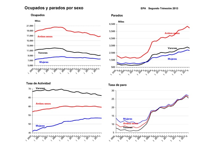 Según los datos ofrecidos por el Instituto Nacional de Estadística, desde el mes de abril se han creado 149.000 empleos, todos ellos en sector privado, que registró un incremento de la ocupación de 151.600 personas, mientras que el empleo público se redujo en 2.600 personas.