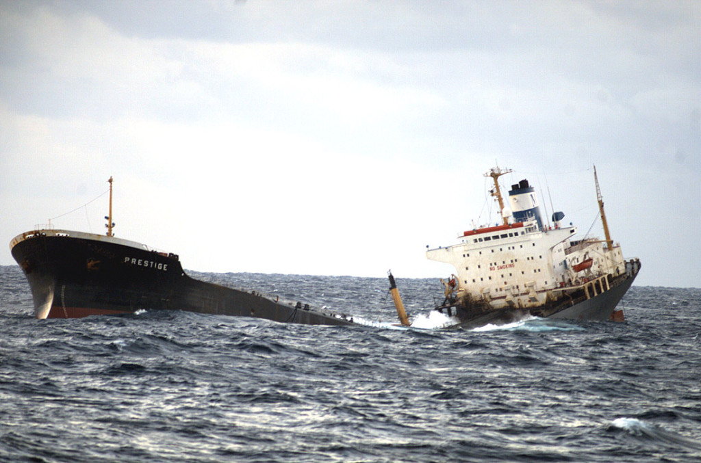 Ese fue el caso del petrolero Prestige, que no debió ser abandonado a la deriva en alta mar, sino ser atoado hasta el puerto de Ferrol en donde no se habría partido en dos mitades al sufrir el vacío de un seno entre dos olas, y después de encontrarse en aguas quietas ser su carga transvasada a depósitos o a otro barco.