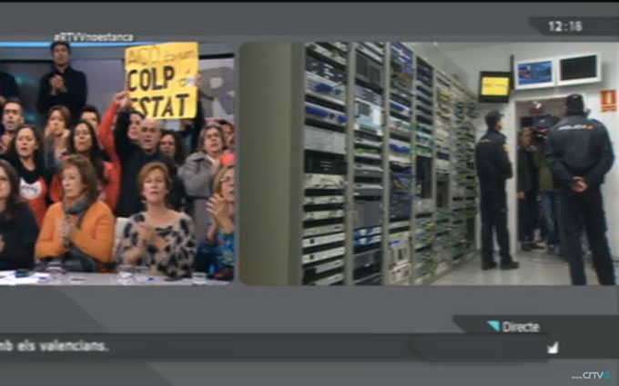 Con el fin de cortar la emisión, han entrado dentro de las instalaciones una treintena de policías nacionales para desalojar a los técnicos que se encontraban en la sala de mandos. Los representantes policiales y del juzgado han sido recibidos a gritos de “Fabra dimisión” y “No tenéis vergüenza”.