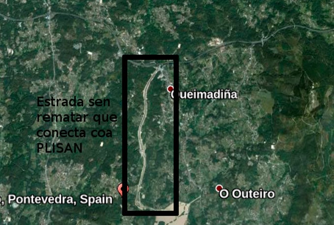 El autor habla de la Ecopista Salvaterra-As Neves, una carretera de doble sentido que conecta con la salida de la autovía Ourense-Vigo con la PLISAN y cuyas obras siguen paralizadas