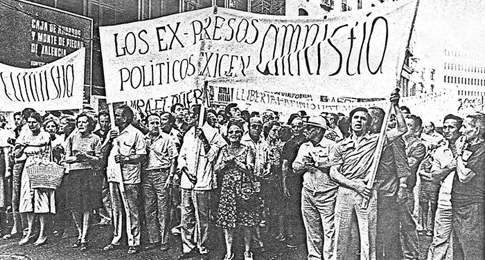 [Manifestación por el centro de Valencia en los años 70 pidiendo amnistía para los presos políticos. FEIS]