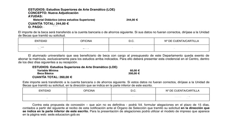 Entre la indignación, el desconcierto y la incredulidad. Así se están quedando los alumnos de enseñanzas artísticas que estos días han recibido las resoluciones de sus becas y que ven cómo ha desaparecido el párrafo donde se anunciaba que el estudiante estaba “exento de abonar la matrícula”.