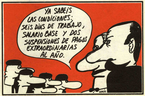 El Gobierno, consciente de la oportunidad que ofrece la crisis, ha configurado una reforma laboral que despoja a los trabajadores de derechos, de modos efectivos de lucha y de herramientas de cohesión y solidaridad. Con esta reforma no se buscaba la creación de empleo, sino dejar al trabajador sin seguridad para que se vuelva menos combativo y exigente y tenga menos capacidad de maniobra y de negociación con la patronal. El fin último de la reforma laboral, y de todas las medidas del Gobierno, es crear un sistema en el que trabajador sea el eslabón más débil y tan sólo le quede aceptarlo y competir entre sus similares por las migajas que le ofrece el mercado laboral. Las continuas declaraciones de la CEOE, Rosell, y otros miembros de la patronal pidiendo los minijobs con el argumento de que es mejor un trabajo de 400 euros que ninguno es el perfecto ejemplo de lo aquí expresado. Joaquín Almunia lo dijo alto y claro «Mejor algo mediocre que nada». La estrategia generalizada de represión obrera mediante leyes y miedo para que su desesperación le lleve a aceptar trabajar para ser pobres. Ya tenemos dos trabajadores al precio de uno, dentro de poco dos trabajadores serán menos importantes que un apero.