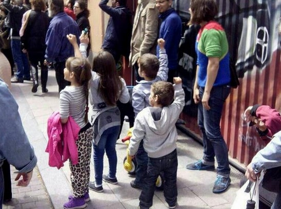 Los pequeños que se ven en la foto levantando el brazo sin saber muy bien qué significaba ese símbolo estaban aprendiendo a ser libres. A no pedir permiso y exigir sus derechos, a no aguardar una lista de espera en la que se escudan los que sólo piensan en no perturbar el sueño de los poderosos. Estaban viendo cómo sus familias desobedecían con total legitimidad unas leyes que oprimen a los de su condición.