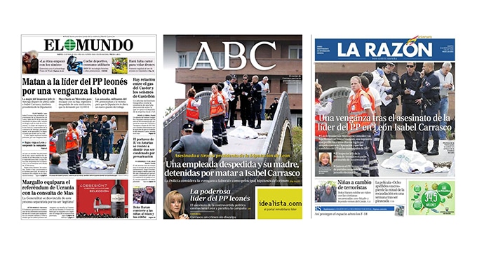 La electoralización de la muerte no es algo nuevo en este país, no hace falta recordar la campaña de mentiras del gobierno en los días posteriores al atentado terrorista del 11 de marzo para llegar vivos a las elecciones. El diario El Mundo y el diario ABC han aprovechado para editorializar sobre el crimen argumentando que se debe a un supuesto clima de animadversión hacia los políticos uniendo las agresiones a éstos que ha habido los últimos días, como la que sufrió Pere Navarro, y protestas ciudadanas completamente legítimas como los escraches. El Mundo reconoce en su editorial que el crimen no tiene nada que ver con este supuesto clima, pero a pesar de ello establece la comparativa. “Si bien a priori está motivado por un despido laboral, se produce en un ambiente de creciente animadversión hacia los miembros de la clase política. Una parte de la ciudadanía considera que éstos están en la raíz de todos sus problemas y donde antes había respeto o indiferencia se reproducen ahora escenas de violencia. Abucheos, insultos, escraches e intentos de agresión están hoy a la orden del día y son el síntoma de un malestar latente que de no combatirse a tiempo puede degenerar en situaciones que pongan en riesgo la convivencia”.