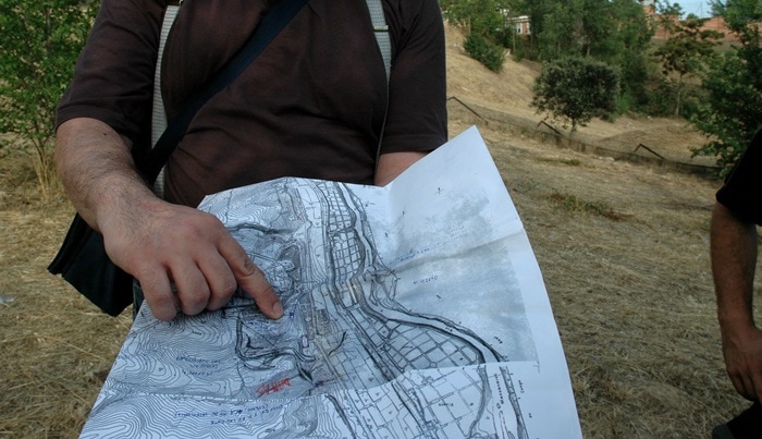 La surrealista expedición se asocia a La Cosa Radiactiva, “un proyecto de investigación sobre radiactividad, arte y electrónica”. Uno de sus fundadores, el ingeniero de telecomunicaciones Sergio Galán, con barba hipster, es uno de los miembros del grupo que camina hacia la Moncloa en busca de radiactividad. Lleva en la mano un contador Geiger fabricado con hardware libre y un tubo ruso.