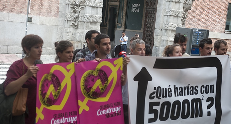 En esta ocasión, su propuesta de diálogo se ha escenificado ante las puertas del centro cultural Conde Duque ya que, según han expresado, representa el tipo de gestión fallida de los espacios públicos por parte del Ayuntamiento de Madrid. “Estamos ante las puertas de uno de los edificios clave para entender lo que está pasando en esta ciudad”, han argumentado. “A pesar de que hicieron una inversión millonaria para reformarlo, el Conde Duque es uno de los edificios que el Consistorio mantiene vacíos, infrautilizados, en el centro de la ciudad. Mientras, apenas a unos cientos de metros de aquí, desde hace siete años viene funcionando el Patio Maravillas, cuyo aniversario estamos celebrando durante esta semana”, han recordado.