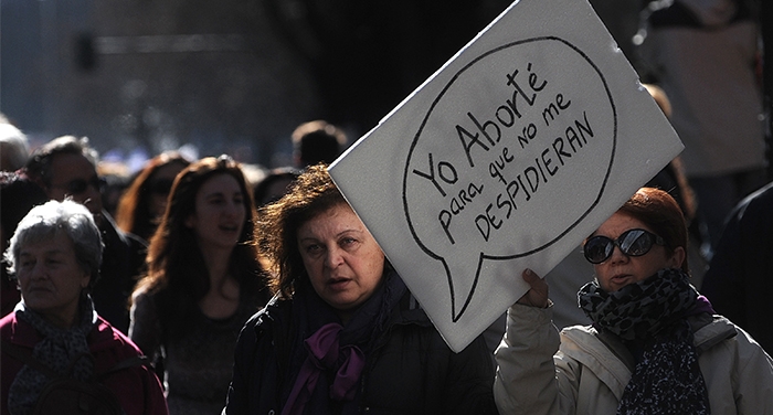 Por la puerta siguen llegando visitantes al Congreso, es fácil adivinar quién viene a qué, su aspecto responde a los tópicos. Ganan los lazos morados y algunas mujeres que siguen el encuentro pro-elección deben hacerlo a través de un plasma, la convocatoria ha desbordado todas las previsiones.