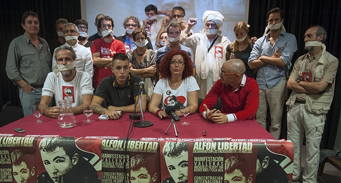 El acto ha sido conducido por Willy Toledo, quien ha asegurado que ésta “no es una causa única contra el compañero Alfon sino contra todos aquellos que quieren sacar los pies del tiesto” y enfrentar la “represión” y los “efectos del sistema capitalista”. El actor ha sostenido que el joven vallecano es víctima de un “montaje policial” y que no se ha encontrado “ningún tipo de huella”, por lo que hay “una falta absoluta de pruebas”. “El único delito de Alfon ha sido luchar desde que era un chaval por los derechos de la clase obrera”, ha remarcado.