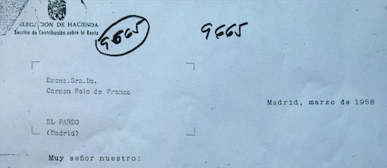 Un funcionario de hacienda envió una carta en 1958 a Carmen Polo de Franco para avisarle de que tenía que hacer la declaración de la renta