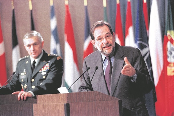 La OTAN sirve, entre otras cosas, para colocar en puestos de responsabilidad a ineptos caraduras sinvergüenzas y mequetrefes como Javier Solana, que hacen que uno se avergüence de ser español.