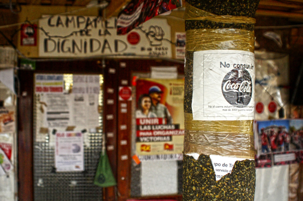 “Este es el periodista”, indican a los compañeros. Miran con la comprensible desconfianza de quien sabe que sólo se habla de ellos porque la Audiencia Nacional les ha dado la razón y son noticia, con el escepticismo propio del que ha visto tantas veces su mensaje «silenciado por la prensa”. ¿Por qué un boicot a Coca-Cola si quien realizó el ERE fue el conjunto de sus embotelladoras? La pregunta, que parece obvia para quien responde, “no aparece con tanta frecuencia en los medios como las dos páginas a color que hace unos meses leíamos en toda la prensa de tirada nacional”. La publicidad informativa de la empresa repetía lo que consideran “la formula secreta de los ‘Zero’ despidos” del entonces presidente de The Coca-Cola Company, Marcos de Quinto: “Este no es mi ERE. Esta no es mi empresa”.