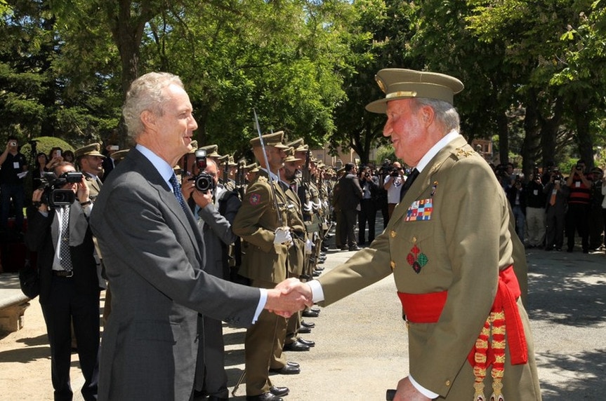 Pedro Morenés y Álvarez de Eulate es ministro de Defensa y además un grande de España, aristócrata con una excelente relación con la Casa Real y los Borbones. Relación regia lograda gracias al parentesco filial al ser hijo de José María de Morenés y Carvajal (Vizconde de Alesón) y Ana Sofía Álvarez de Eulate y Mac Mahon y nieto del VIII conde del Asalto. Precisamente esa cercanía con el rey Juan Carlos fue la que le aupó al Ministerio de Defensa, sobre todo tras la adscripción del CNI a Vicepresidencia del Gobierno bajo el control de Soraya Sáenz de Santamaría, en detrimento de la cartera de Defensa. Pedro Morenés no era sólo un hombre de la Casa Real, también lo es de la industria armamentística española. Su carrera ha sido una puerta giratoria perpetua, pasando de puestos en la Administración pública a cargos en la empresa privada, sobre todo vinculados a sectores próximos al Ministerio de Defensa.