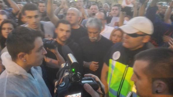 A la sombra del crucifijo que corona la parroquia ‘roja’ vallecana, decenas de personas se han enfundado un peto blanco y se han colocado unas máscaras del mismo color. Ellos fueron los que formaron el primer círculo alrededor de Alfon. La capa exterior de la cebolla fueron otras tantas personas, que no llevaban peto y que en lugar de máscaras blancas portaron otras con la cara del joven vallecano. Alfon había transmitido formalmente a la Sección 30 del tribunal, mediante un escrito, la información exacta del punto en el que se encuentra. «Ante todo muchísima calma, no hagáis ninguna acción rara que pueda ponerles nerviosos, es un deseo expreso de la familia», explicaba el moderador.