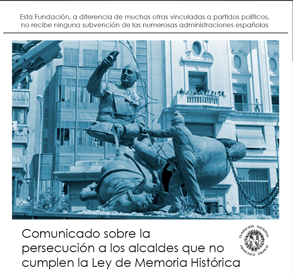 La Fundación Francisco Franco ha asegurado que la denuncia contra Rita Barberá prueba que la Ley de Memoria Histórica no pretende reparar a víctimas de la guerra civil sino ser usada como herramienta política contra rivales políticos como la actual senadora del PP. La fundación amenazó el pasado 14 de julio con querellarse contra todos los alcaldes y concejales que aprobaran la retirada de «monumentos, vidrieras, escudos y estelas por daños al patrimonio histórico artístico del pueblo español». El comunicado hacía referencia a los consistorios de Madrid, Valencia, Zaragoza, A Coruña, Cádiz o Santiago de Compostela, que habían mostrado su intención de modificar el callejero para cumplir con la Ley de Memoria Histórica.