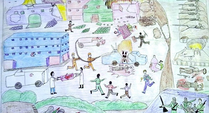Se cumple un año de la última masacre llevada a cabo por el estado de Israel en la franja de Gaza. El número de víctimas mortales causado por tal invasión se cifró en 2.200. Gracias a la periodista española Isabel Pérez, residente en Gaza y corresponsal de Eldiario.es y La Marea, tenemos con frecuencia noticias de la auténtica realidad que se vive cada día en aquel territorio. Posiblemente no haya otro en la historia que haya sufrido y siga sufriendo tan atroz acoso. La ilustración que acompaña a este artículo es el dibujo que un niño palestino hizo después de haber soportado aquella masacre. Con toda seguridad, desde el llamado holocausto padecido por los niños judíos en Europa durante el imperio nazi, nunca la gran tragedia que sufren los niños palestinos fue tan indiferente a las grandes naciones que invocan los principios de justicia, democracia y libertad.