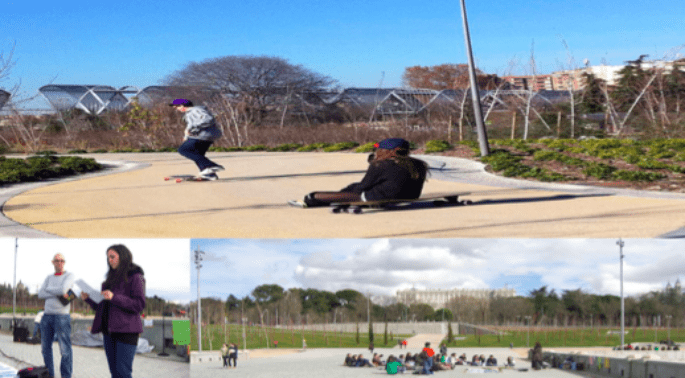 Aunque la actividad propuesta no se pudo realizar por problemas técnicos se les dio a los participantes las instrucciones por si querían realizarla por su cuenta y remitir el producto al grupo de trabajo (invitación que continúa abierta). La consigna fue la siguiente: fotografiar espacios y actividades de adolescentes en Madrid Rio.