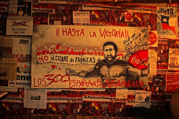 En lo más recóndito del Parlamento Europeo, en el edificio Willy Brandt, hay un pequeño santuario para aquellos que se enfrentaron a la más grande de las multinacionales. Ese que aloja al grupo de la Izquierda Unitaria Europea, recuerda en su planta número dos a los trabajadores de Coca Cola en lucha. Algunas de las puertas de los eurodiputados de Izquierda Unida reciben a sus visitas con una pegatina que predica “No bebas Coca Cola. Si Madrid no fabrica, Madrid no consume”. Ya dentro, la mancha cubre la parte destinada a España en un mapa gigante de Europa. Casi 900 días acampados al frente de la fábrica de Fuenlabrada, protestas casi diarias y un reguero de sollozos que bien llenaría el Canal de Isabel II lograron hacer mella en la gigante de las bebidas refrescantes. “Sin su lucha, es probable que muchas otras no se lo hubieran pensando dos veces antes de echar a sus trabajadores”, anticipa la eurodiputada de IU, Paloma López.