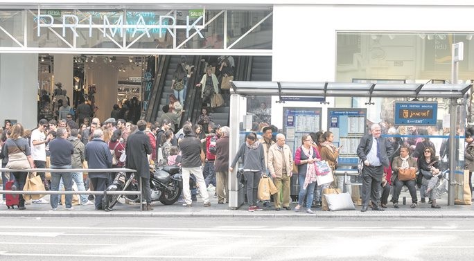 «Qué es lo que regalan aquí?». La pregunta de una señora de mediana edad es comprensible: una interminable cola da la vuelta a la manzana. Todos los que la forman comparten un mismo objetivo: acceder cuanto antes a la recién inaugurada tienda de Primark en la madrileña Gran Vía. No, no regalan nada. Simplemente venden ropa barata. Muy barata.