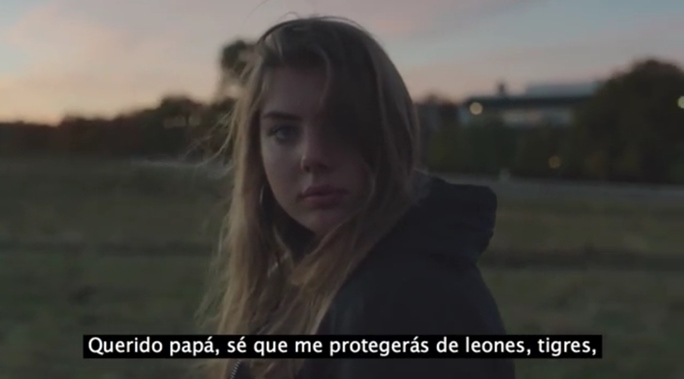 «Querido papá, sé que me protegerás de leones, tigres, armas […] sin siquiera pensar en el daño que te pueden hacer a ti, pero querido papá, seré una niña, por favor haz todo lo que puedas para que ese no sea el mayor peligro de todos», termina el vídeo.