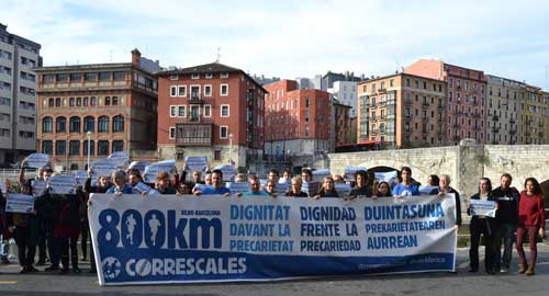 De hecho, este jueves arrancó en Bilbao la carrera de relevos solidaria enmarcada en la iniciativa @Correscales2016, impulsada por decenas de colectivos sociales, sindicales y políticos de Euskal Herria y Catalunya. Así, un total de 80 personas van a recorrer sin pausa los 800 kilómetros que unen ambas ciudades, trayecto en el que van a contar con el acompañamiento de diferentes organizaciones, movimientos sociales y plataformas ciudadanas que han querido acompañar sus reivindicaciones y visibilizar su lucha. Desde el movimiento feminista hasta la lucha contra el TTIP, numerosas redes y campañas se han sumado a la luchas contra la precariedad porque, como bien señalan sus impulsoras, se trata de una iniciativa para que se manifiesten todas y cada una de las precariedades que nos afectan día a día.