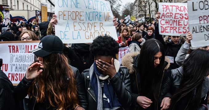Ésta es la cuarta jornada de manifestaciones y paros que sacude Francia desde que a mediados de febrero el gobierno galo publicó el texto inicial de la “ley El Khomri”, en alusión a la ministra de Trabajo, Myriam El Khomri. La propuesta desató una ola de indignación en todo el país que se tradujo en protestas multitudinarias y asambleas ciudadanas en universidades y plazas, hasta el punto de que el 14 de marzo, unos días antes de la presentación oficial del proyecto de ley, el gobierno edulcoró algunos de los puntos más polémicos del texto original.