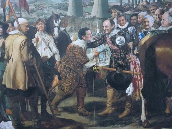 Con motivo de la reunión del Consejo de Seguridad Nuclear en el salón de actos del Museo del Prado, un grupo de activistas de la organización ecologista han llevado a la pinacoteca una relectura en tamaño real de la célebre obra de Velázquez. En ella, las autoridades de la ciudad no entregan las llaves de la misma, sino que son los dirigentes del Gobierno en España los que entregan la llave de la seguridad nuclear a las grandes compañías eléctricas, «únicas beneficiarias del peligroso negocio de la energía nuclear», según denuncia Greenpeace.
