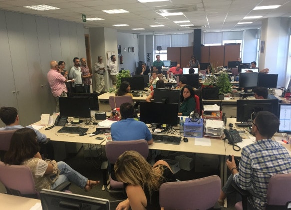 Cierro los ojos. Veo a Alicia Gutiérrez. El teléfono pegado a la oreja. Un tecleo trepidante acompaña al humeante cigarrillo que se consume en el cenicero. ¿Alguien ha llamado a los Bomberos?, se oye de lejos. Pilar Benítez está enterrada en planos del metro de Sevilla y Daniel Blanco termina la segunda apertura del día en Local. Carlota Muñoz, sentada junto al becario repasa concienzudamente el texto, una y otra vez. El móvil de Diego Suárez suena. Mira la pantalla, se levanta, descuelga y con una sonrisa contesta: “¿Qué pasa?… Aquí estamos, en el andamio”.